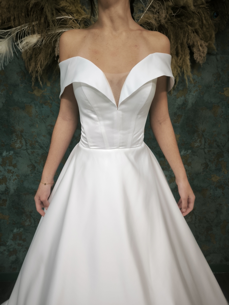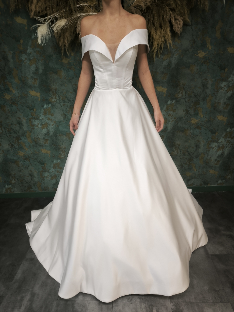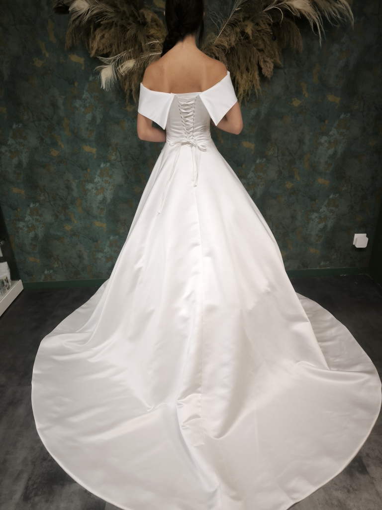 Disponible à l'essayage uniquement dans notre boutique de Dijon. Existe en ivoire uniquement. Modifications possibles sur devis. Code prix: ☆☆☆