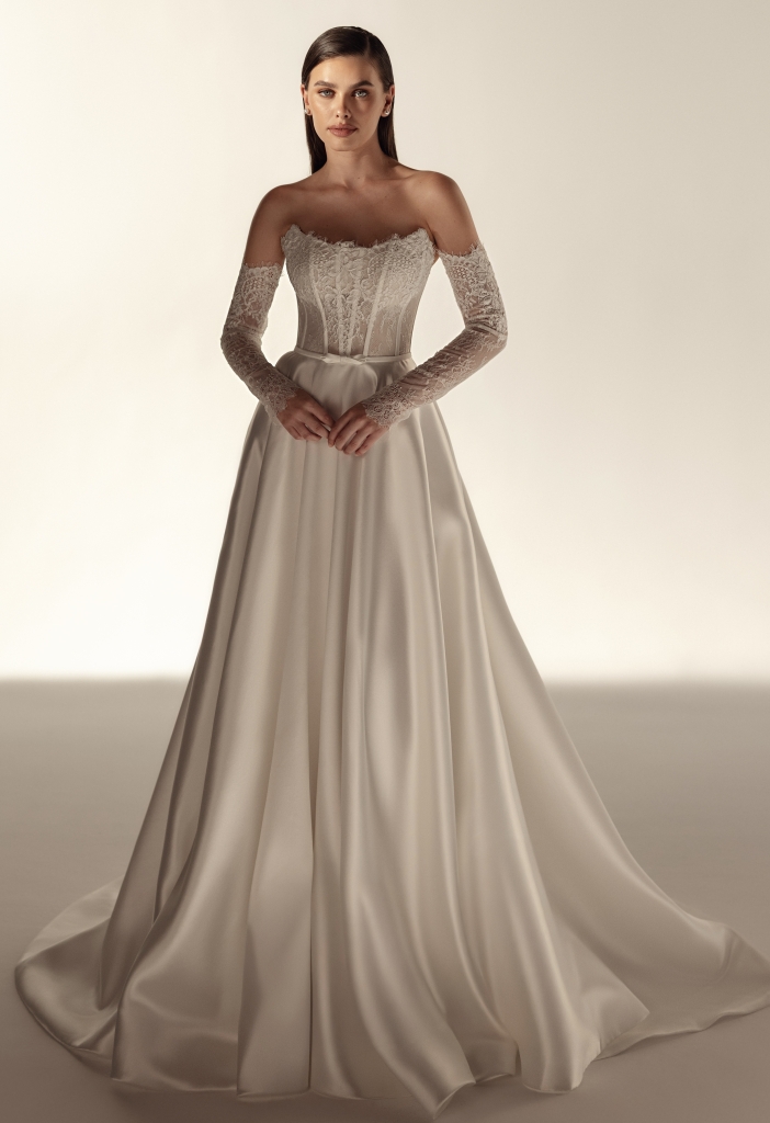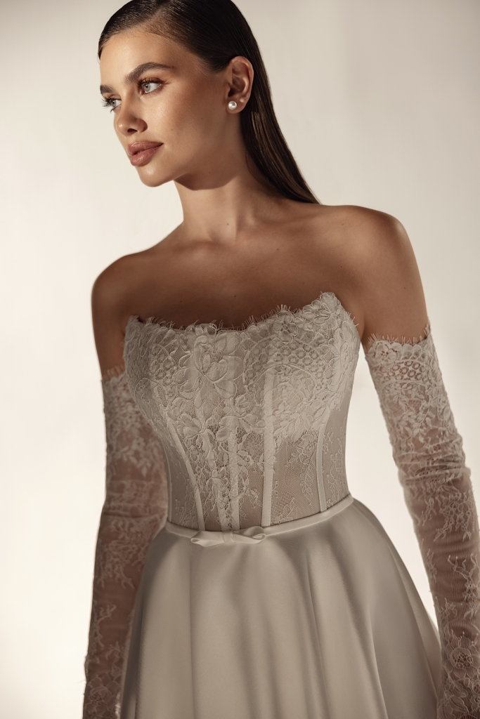 Disponible à l'essayage dans nos boutiques de Besançon & Dijon. Existe en ivoire uniquement. Code prix: ☆☆☆☆