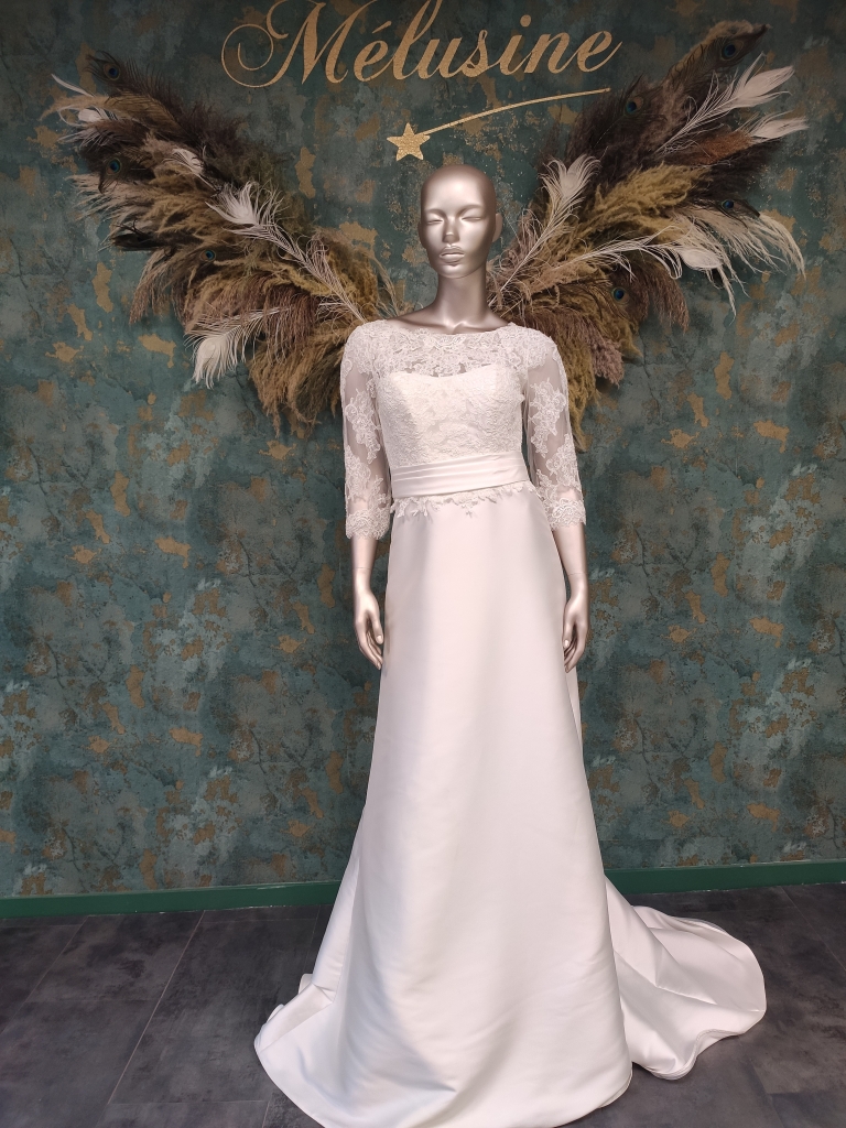 Disponible uniquement dans notre magasin de Besançon. Sur stock en ivoire T.42, possibilité de resserrer dans une taille inférieure sur devis. Prix initial: 699€ Promotion: 299€