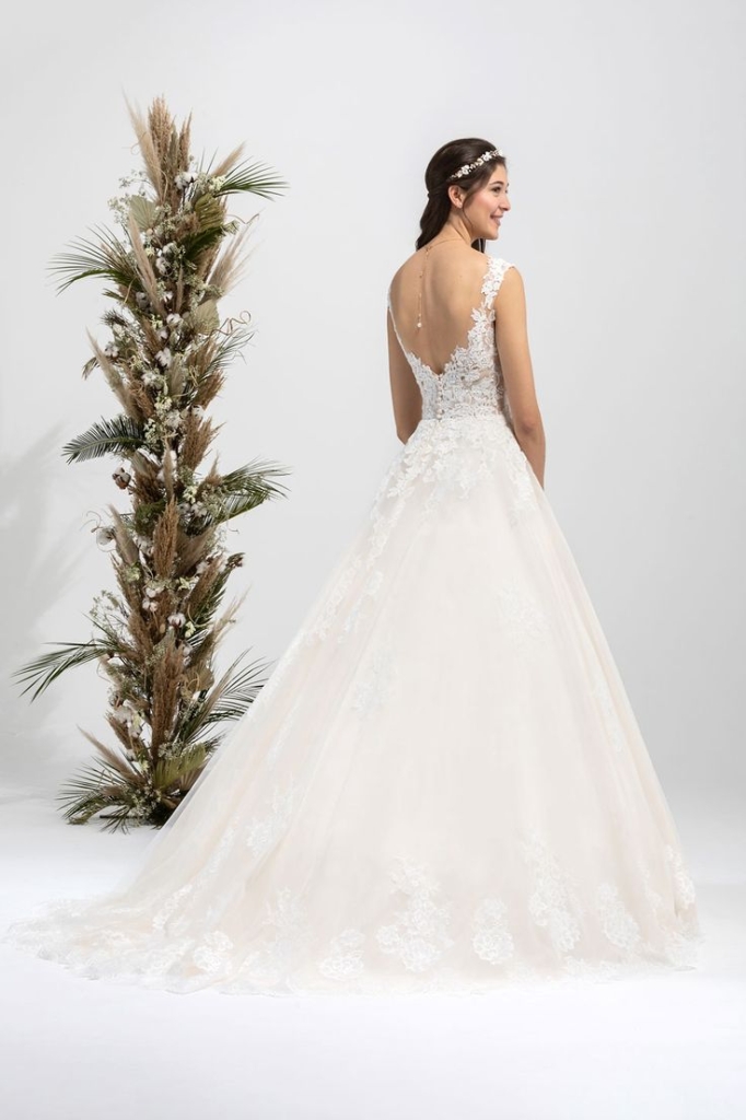 Disponible uniquement dans notre boutique de Besançon en ivoire/ivoire T.44 (En photo en ivoire/nude), possibilité de resserrer dans une taille inférieure sur devis.