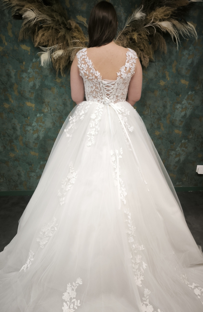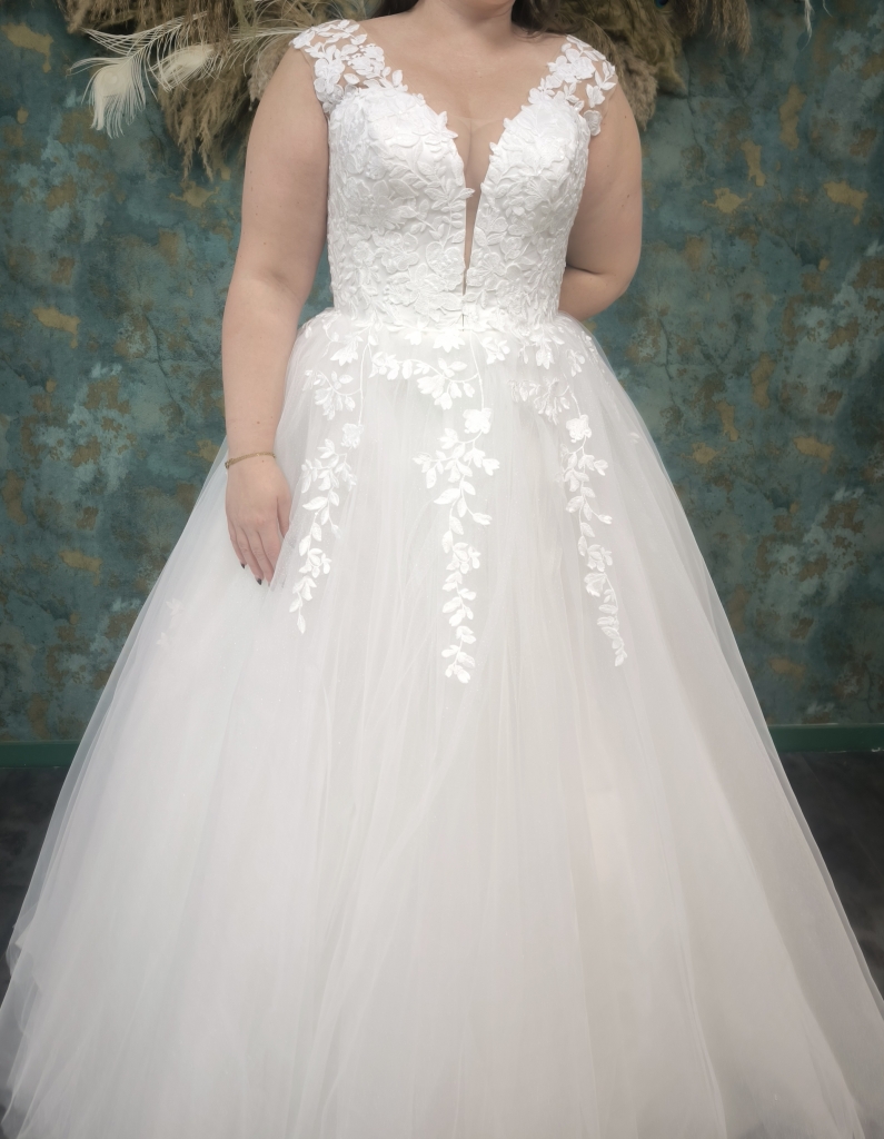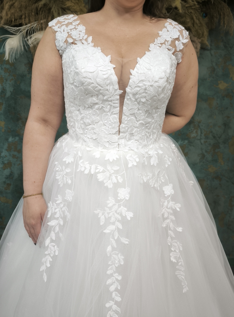 Disponible à l'essayage dans nos boutiques de Besançon & Dijon. En ivoire uniquement. Modifications possibles sur devis. Code prix: ☆☆☆