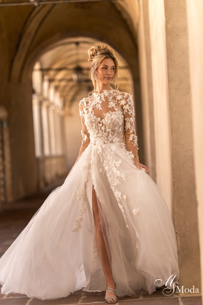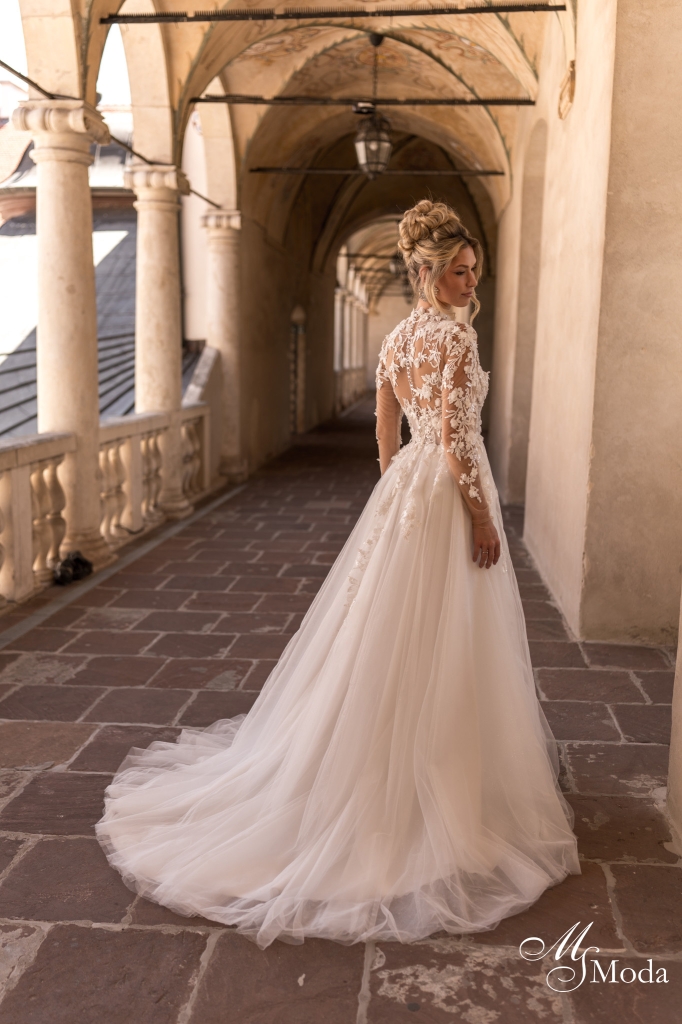 Disponible à l'essayage uniquement dans notre boutique de Besançon. En ivoire uniquement. Modifications possibles sur devis. Code prix: ☆☆☆☆☆